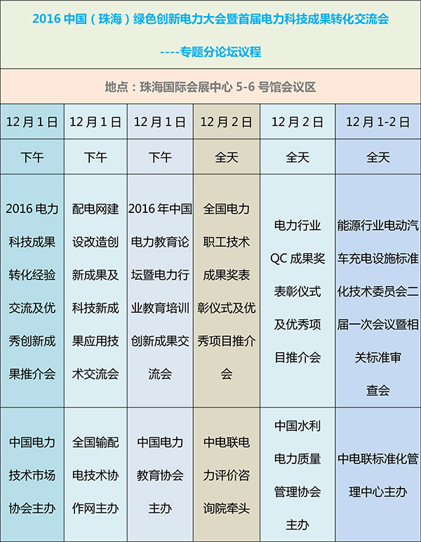 看过主论坛的日程安排后,是不感叹本届大会的阵容如此强大,嘉宾都是电力行业内的专家,想要聆听他们关于中国电力产业的“创新驱动发展、转化加强应用”等方面的精彩观点,就来2016珠海绿色创新电力大会暨展览会吧。下面,小编为小伙伴们奉上专题分论坛的日程安排。