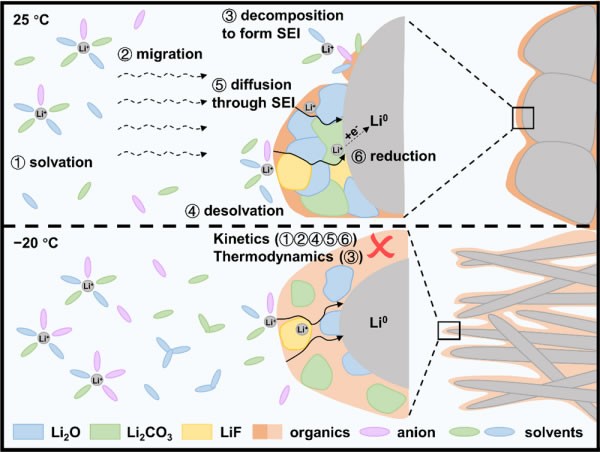 物理所揭示温度调控锂金属电池界面相和Li+输运